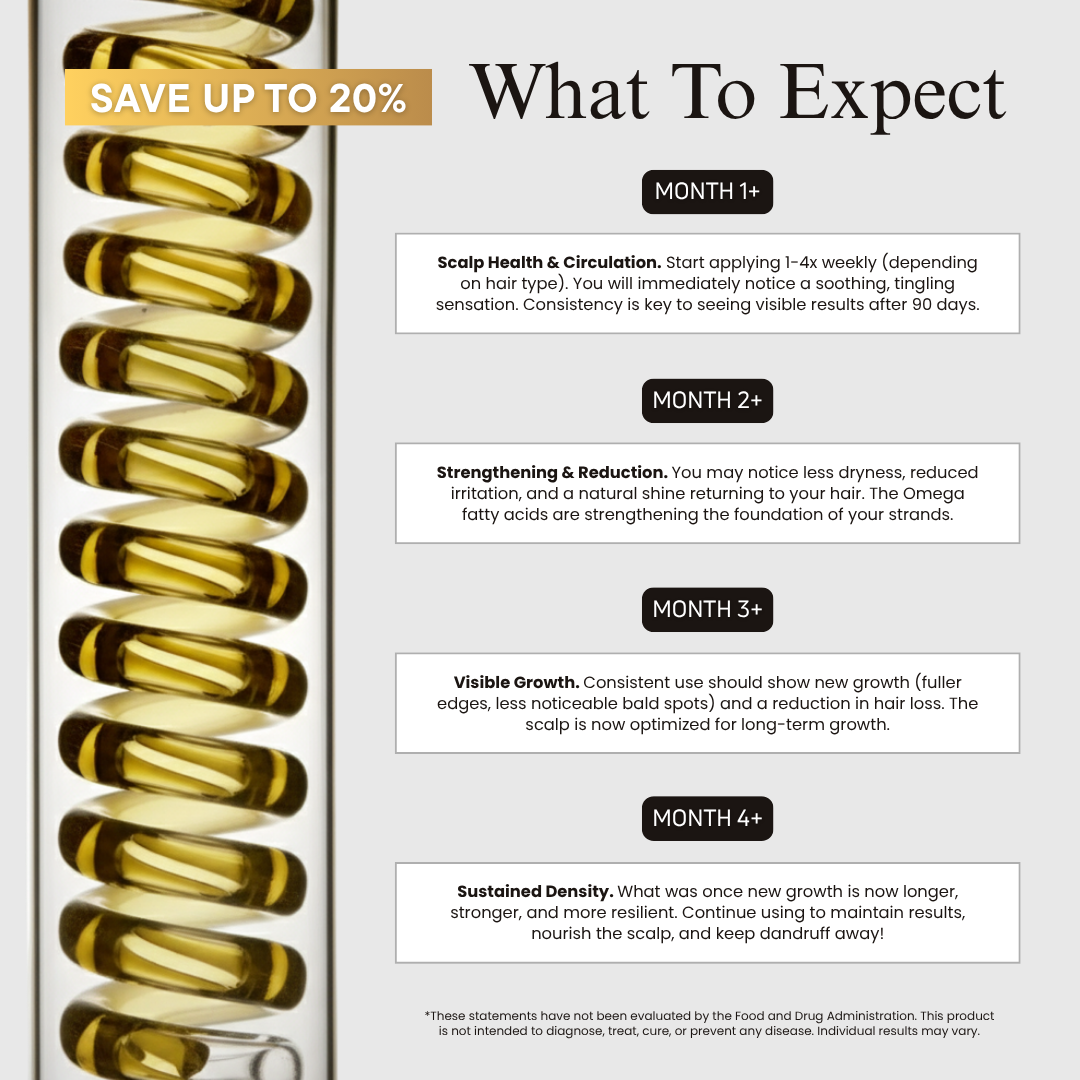 Massage the Hair Growth Serum into your scalp before bed and in the morning.